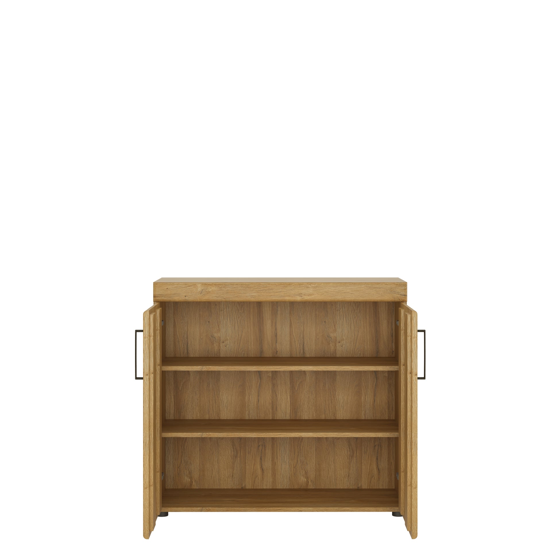 The smaller, but equally spacious cabinet features 2 shelves, making it ideal for storing lots of items. For the lovers of natural wood, this range offers you the oppotunity to enjoy the charm of wooden furniture at an affordable price. Made from high quality MDF in the colour of grandson oak, which looks just like natural timber. An additional feature is the beautiful antique metal handles which gives a timeless elegance to the collection.